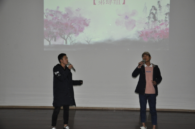 在主持人对本次比赛的比赛流程和比赛规则做了简短介绍后,比赛正式开始。此次大赛形式为两人合唱,选手们在舞台上不仅尽情地展示了自己的才艺,创造出了一幅幅声色兼美的亮丽风景, 而且还用自己动听的歌声和不俗的舞台表现,诠释着青春飞扬的主题。整个比赛过程气氛热烈,掌声和喝彩声经久不息,一次次将整个会场的气氛推向高潮。安全学院共有三组选手在初赛中脱颖而出,他们分别为龙昭熹与何子祺组、王联坤与张翔宇组和吕娟与叶子靖组。龙昭熹与何子祺组倾情演唱了一首《斑马,斑马》,龙昭熹洒脱自由的吉他演唱、何子祺成熟巧妙的歌唱技巧将这首歌沧桑而又悲凉的意味表达得淋漓尽致。其余的两组选手的表现也非常优秀,他们用自己的实力展示自我,不同的唱法,不同的风格,调动了在场观众的热情气氛。