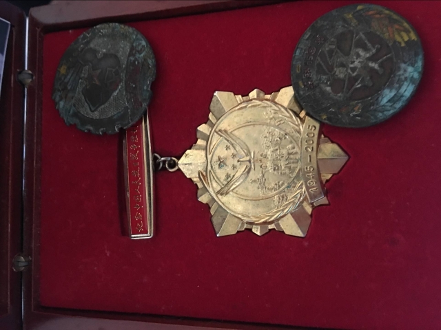 董文征老前辈今年已有89岁高龄,他于1944年加入新四军,当时的他仅有15岁,谈到入伍原因,他说道:“我开始是儿童团的,在这个地方就拉游击,八路军新四军都打游击。我那时候很小,十几岁,就跟着部队走了。那时候日本鬼子到处抢杀,在家也不行,我就走了。那时候看日本鬼子到我们这个地方到处杀人放火,老百姓南跑北跑,不跑就被杀了。日本鬼子侵略中国时残酷啊。他见了中国人就杀,不管你是军队也好老百姓也好,烧杀抢掠。”董老前辈入的是十八军,二野战军,解放西藏的部队,老前辈在队里主要是负责后勤,他说:“打仗的时候我是后勤兵,供给,军需,军队要用的物品都属于我们单位。枪炮,子弹,装备,都是我们管。”在部队时老前辈也曾学习写字,管财会等。采访最后,老前辈向志愿者展示了自己以前所获得的勋章和一些老照片并与志愿者亲切合影。