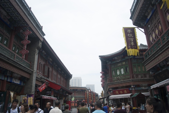 上午10点,顶着烈日炎炎,队员们来到了坐落于海河西岸,作为津门十景之一的古文化街。天津古文化街一直坚持“中国味,天津味,文化味,古味”的特色,以内以文化用品为主。还有近百家店堂。是天津老字号店民间手工艺品店的集中地,有地道美食:狗不理包子,耳朵眼炸糕,煎饼果子,老翟药糖,天津麻花等。还有旅游景点有天后宫,喜马拉雅,大清邮币,泥人张彩塑等。队员们走在街上深深地感受着在其他地方所感受不到的中国味、天津味、文化味、古味。随意走进一家店铺,与店主聊上几句就能了解到这些传统文化在天津的发展与传承。队员们还参观了捏泥人与吹糖人等独特的民间艺术。传承不光是传承物质更是传承一种精神。鳞次栉比的古街带给队员们的更是一种在历史中前行的情怀。