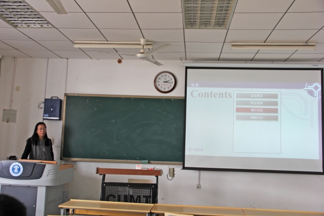 进行招聘。因为多数同学对其了解较少,公司特意安排了副总经理张广和人力资源部经理刘江丽进行招聘,刘经理从公司发展规模、薪资待遇、休假安排及工作地点向参会的同学进行详细的介绍。同学们积极参与,认真听讲,对实习安排、出国工作等宜进行提问,公司负责人耐心地解答同学们的疑问。经过交流环节后,有意向的同学向公司投了简历。公司负责人对他们一一进行了面试。最后,企业领导对安全学院同学们的能力给予了肯定,并表示未来加强与安全学院的合作。