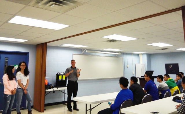 早晨8时30分,实践团乘大巴出发,历时半个小时到达位于摩根敦的WVU安全训练中心。训练中心Associate Director JOSHUA R.BRADY向实践团成员介绍了WVU安全训练中心的基本情况,并鼓励同学们要重视安全问题,将保障矿山安全作为努力奋斗的方向。接着,实践团跟随工作人员参观了地面火灾模拟设施和巷道火灾模拟设施。在参观巷道火灾模拟设施中,充满浓烟、黑暗的巷道环境让同学们更真实地体验井下火灾环境。
