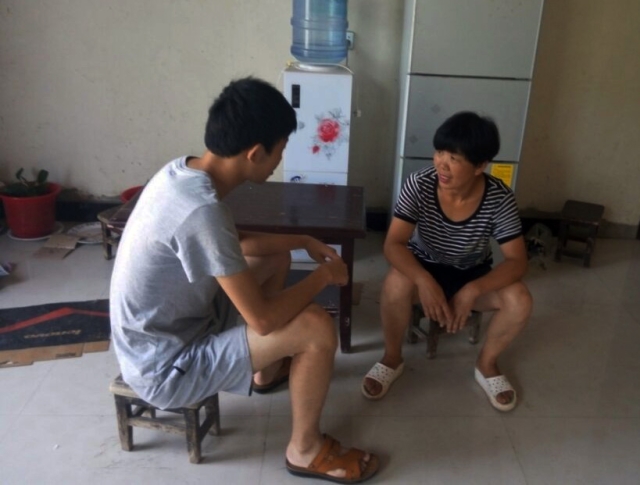 下午5点,两位成员启程跟随王仁伟来到他家里。王仁伟同学在校成绩优秀,尊敬师长,经常主动回答问题,与老师进行学习上的交流。在见到王仁伟母亲后,两位成员表达了诚挚的问候。从与王仁伟的母亲的交流中,成员们了解到,由于家庭经济原因,王仁伟的父母不得不外出打工以养家糊口,供孩子上学读书,王仁伟则独自生活在农村。他的母亲透露到,艰难的生活使王仁伟养成了吃苦耐劳,认真努力的性格,他不仅没有因为留守儿童的身份而感到自卑,反而奋发图强,希望通过自己的努力改变自己的命运。王仁伟坚毅、不为命运所折服的精神,令两位支教团成员都为之动容。