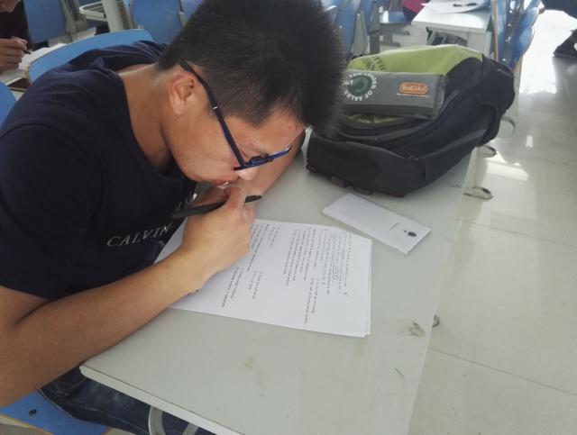在外文学院四六级备考资深学姐传道解惑之后,安全学院又开始进行新闻听力专项练习。下午4点左右,同学们陆续到齐,并开始准备考试。4点20分,学习部干事们开始为他们分发试卷。据悉,此次听力考试题型根据考纲要求,与四级考试题型大致相同。开始考试时,同学们都聚精会神的听听力,时而在草稿纸上记录,时而在试卷上做笔记填写答案。大约在26分钟后,听力考试结束。考生们对照答案,接着对照听力原文,弄清楚自己听不清楚和错误的地方,找出自己的问题所在。考试结束后,考生们大概了解了四级英语听力难度,并纷纷表示自己需在英语听力上不断努力。