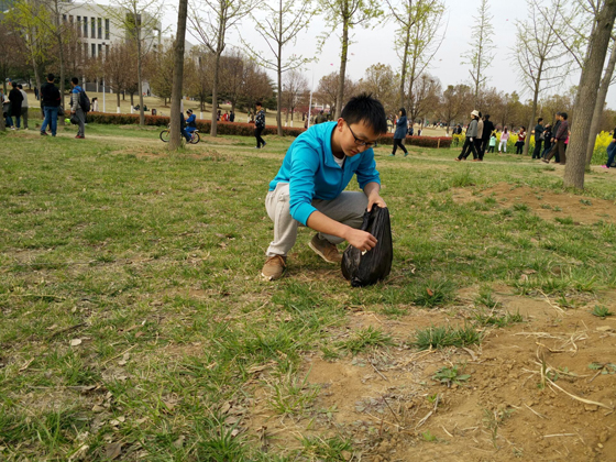 此次活动由安全15-4班班长蒋名军和安全学院青协干事周鑫组织。志愿者们集合完毕后,蒋名军和周鑫对活动意义进行了简要的阐述,随后对志愿者们的工作进行分工。他们纷纷提着垃圾袋对教五大草坪和花海进行垃圾清理,同时向游客分发垃圾袋,并宣传“绿色出行,爱护环境”的理念。作为爱绿色,爱环保的志愿者们,他们不怕脏,不怕苦。,他们将路上的果壳,饮料瓶,烟蒂和餐巾纸等垃圾都一一拾起,放入垃圾袋,豪无一丝扭捏嫌弃。路边带孩子的母亲看到他们捡起垃圾时,对孩子教育到:“你看哥哥姐姐们都在捡垃圾,所以我们不能乱扔垃圾,要爱护环境,把垃圾都扔到垃圾娄里……”随着时间的推移,志愿者们完成了对教五大草坪和花海垃圾彻底清理,同时用行动向游客们宣传了“绿色出行,爱护环境”的理念。