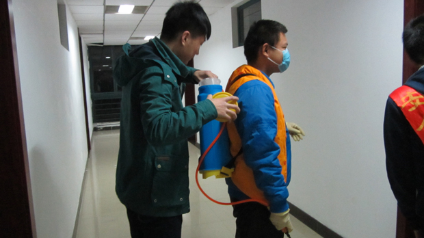 消毒开始前,服务分队队长组织部员们穿好防护衣,戴好口罩和手套,并将消毒液稀释,由其中一个部员背上农用喷雾器。准备完毕后,服务分队全体部员向目的宿舍出发,准备开始对宿舍进行消毒。喷洒消毒液、敲门并说明来意、解说活动目的,各项工作由不同人员执行,服务分队的同学们分工明确,效率极高。各个宿舍的大一同学们都积极配合,分队人员细心负责,喷洒消毒液细致到位,且分队队长细心嘱咐同学们在30分钟的充分杀菌后记得通风。本次活动进展非常顺利。
