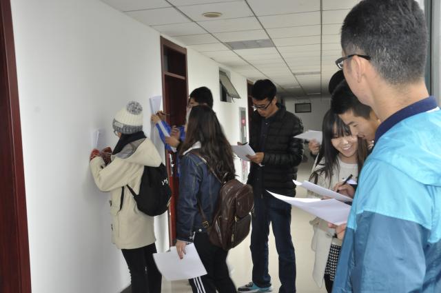 下午2时整,评委团来到梅苑3号楼1楼,开始逐层进行卫生检查。评分总分为100分,打分的内容主要包括“宿舍卫生”、“宿舍安全”、“宿舍文化”和“宿舍装扮”四个方面,取各评委分数的平均分作为每个寝室的最终得分。卫生检查从梅苑B区1楼大三宿舍开始,评审团对宿舍的地面、阳台、卫生间等处依次进行了细致地检查,评审过程中,同学们积极配合,使得评比工作进展极其顺利。尽管离入学已过去一两年,然而大部分13、14级宿舍仍坚持定期整理清洁,宿舍环境干净整洁,舒适宜人。由于平时注重清理和维护,大多数宿舍卫生方面也得到了评审团的一致好评。