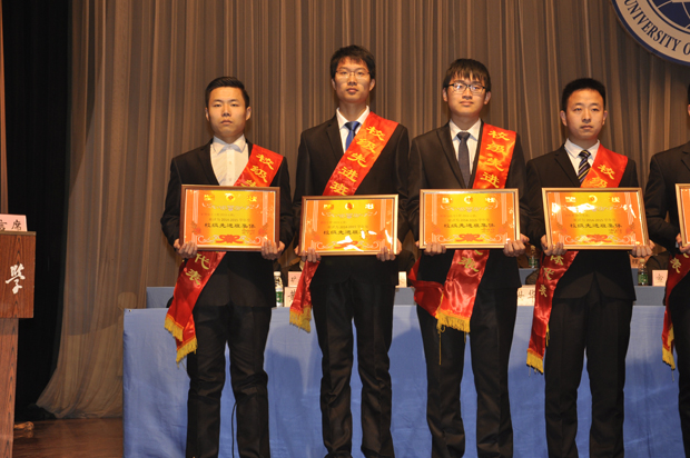 2014-2015学年度学生表彰大会在文昌校区科学馆举行。校党委书记邹放鸣等校领导出席本次大会并为获奖学生代表颁发荣誉证书,党委副书记钱雄代表安全学院坐镇主席台。辅导员郑文奇、何伟民、吴张蔚参加本次会议。