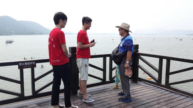 此次问卷调查以街头采访填写问卷的形式进行,不分年龄,主要侧重于了解徐州市及周边地区的主要环境问题以及群众的环保意识。同学们顶着骄阳在规定的区域内展开了调查,针对云龙湖环境问题现状,向游客了解对环境问题的看法。有一位当地的大爷表示,环境问题是景区一直难以解决的问题,但随着市民环境意识的不断提高,环境也正在变得越来越好。虽然采访调查期间同学们也遭到了一些人的拒绝,但还是坚持完成了自己的任务。问卷调查完成后,每个小组的组长将有效的问卷汇总给董齐齐同学,并帮助他完成对问卷结果的统计。