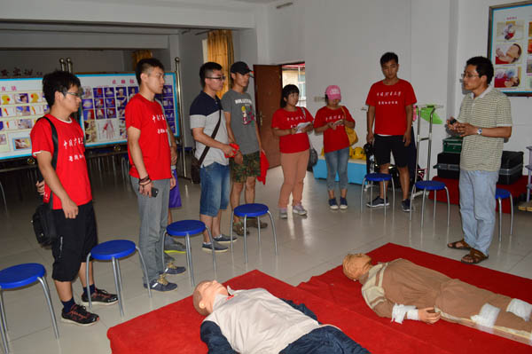 在交流会上,张集煤矿的工作人员向实践团详细介绍了受伤时的急救方法,通过模拟,工作人员生动形象地向各位成员讲解了如何进行创伤急救,心脏复苏等措施,并说明ZH30D隔绝式化学氧自救器参数的设定及使用注意事项。在讲解过后,他还让实践团的成员们亲自体验如何使用自救器,并着重示范了自救器的佩戴动作。实践团成员在尝试佩戴自救器时尚显生疏,但在工作人员的指导下很快便掌握了要领。通过亲手操作,实践团在此次交流会上收获颇丰。