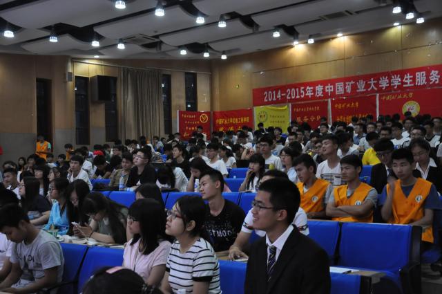 大会流程共分三项,第一项是介绍嘉宾和总队队长脱翔发言。队长脱翔以PPT为载体着重讲述了服务总队的历史以及总队发起的各项活动,例如:爱暖夕阳—援助孤寡老人,图书馆共建—用行动爱护我们的矿大等等,情满矿大,总队为爱插上翅膀。第二项是参赛各学院分队进行3分钟学年工作展示以及2分钟答辩。在各分队展示过程中,首先 “真真切切献爱心,踏踏实实做志愿的口号响起全场,安全学院分队长董齐齐以温婉的姿态向大家缓缓讲述了学院分队的构架组成,分队进行的常规活动—图书馆共建和美化校园,特色活动—爱心班级。在答辩环节,孟老师问道:你认为爱心班级活动最大的困难是什么?董齐齐正声答道:“是不知如何有效的引导各班级建设属于自己的文化,但我们有信心逐步摸索,将这个活动越办越好。”话音刚落顿时掌声四起。环节结束后,孟老师以幽默的语言说道:服务就像谈恋爱,只有用心,你才能体会其中滋味。第三项是主持人宣布评选结果并现场颁奖。安全学院以88.5的总分位居前列,安全分队荣获“标兵服务分队”称号,董齐齐被表彰为“优秀负责人”。