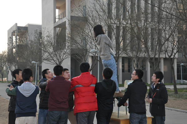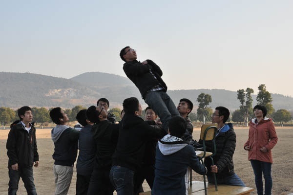 本次活动一共展示了四个主旨并进行了对应的四个活动,即“打破内心障碍”――“信任背摔”、“竞争与合作”――“脚斗”、“大学生活中的变化”――“情景剧”、“面对未来,不忘初心”――“写出的你的感悟”。在“信任背摔”活动中,一个同学从高处笔直倒下,他身后的同学用双手支撑他的身体,这大大增强了同学之间的信任。“脚斗”是活动中最为精彩的部分,全班分为两组以打擂的形式进行比赛,其中身体瘦弱的李华祥凭借特快的速度和高超的迂回战术打败了身材高大的张浩峰,赢得同学的赞美之声。在“情景剧”环节中,以各组同学所向往的校园生活为契机,每个同学都参与到了活动中。“写出你的感悟”是本次活动从思想上激发同学们奋发意识得重要环节,同学们纷纷写出了现在他们对过去、现在及未来的感悟,意识到我们应永远保持一颗勇于拼搏的心。