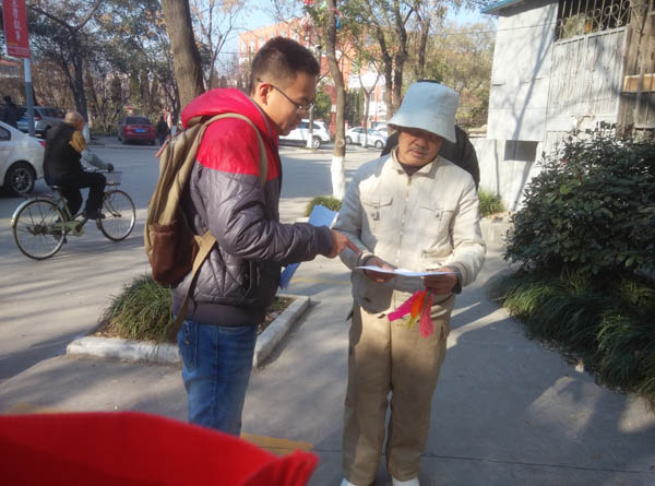 在党的十八大着重提出“依法治国”的口号下,安全学院服务分队携手机电学院思源社于12月6日走进奎园小区向市民宣传法律知识,进行普法活动。