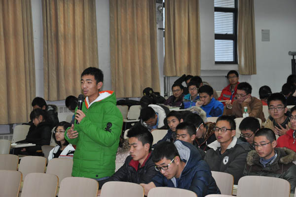 下午两点,报告会准时开始。报告会整体分为两个部分,第一部分是“明星展示”。首先,“星级宿舍”成员刘霞通过PPT向大家展示了自己和舍友们大学四年的点点滴滴,她告诫同学们在生活中要与舍友和谐相处,相互理解。“社会活动之星”白学松则向大家介绍了自己的学生工作经历,告诉同学们要“会说话,会办事,会学习”。“自强不息之星”卫向伟无疑是所有“校园之星”中最特殊的一位,他幼时因意外失去了右臂,却靠着一股永不服输的韧劲迎难而上,不仅将自己的生活打理得井井有条,在学习上更是名列前茅。最后,来自矿大“明星班集体”的学生代表鹿通向大家介绍了自己班级建设的宝贵经验,他精彩幽默的报告使现场气氛十分活跃,博得了同学们一阵又一阵热烈的掌声。第二部分是现场问答,“校园之星”们就同学们提出的“如何处理学习与学生工作的矛盾”,“如何恰当处理使宿舍成员的关系”,“如何调动班级同学参加集体活动的积极性”等诸多问题一一解答。