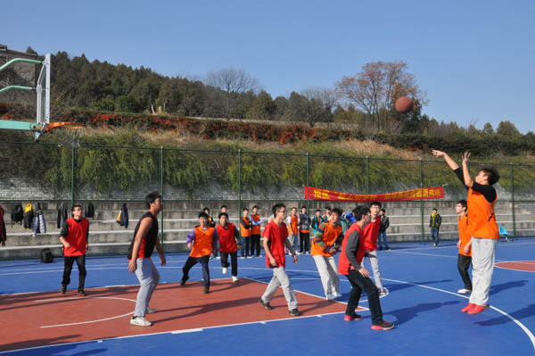 12时30分,首先想起哨声的是消防11-1班和安全13-4班比赛场地。姜还是老的辣,比赛一开始,消防11-1班便率先进入状态。特别是一号中锋开始阶段便利用快攻打成二加一,后又抢断助攻队友,从而带动了整场比赛的气氛,赢得观战同学的欢呼声。下半场中,安全13-4班终于找到状态并将比分差距缩小到八分,可惜好景不长,由于对手手感发烫,频频三分、远投命中,最终安全13-4班以16:31败给消防11-1班。在旁边场地进行的是安全13-1班和安全13-3班的比赛,尽管13-3班九号球员不断跳投命中,甚至压哨球命中,但由于对方整体实力强,最终以20:45败于13-1班。在安全14-2班和安全14-5班的比赛中,14-2班二十七号和九号球员不断抢断快攻突破上篮,在开始阶段便遥遥领先,毫无悬念的以50:24大胜14-5班。同样的情况发生在安全12-1班和安全14-4班的比赛中,12-1班三号和十号球员不断连线,十号更是频频命中三分,使比分差距越来越大,最终14-4班以20:47惨败于12-1班。而在安全12-2班和安全13-2班比赛中,由于前半场双方均未找到状态,打成11:11平,下半场13-2班开始发力,特别是十号球员多次抢断并助攻八号命中三分,凭借着稳定的技术和默契的配合,最终以38:16大胜12-2班。最为胶着的是安全11-3、4班和安全12-4班的比赛,双方势均力敌,你来我往,直到最后一秒11-3、4班以34:32险胜于12-4班。