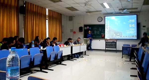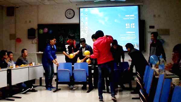 13级2班的主题班会现场。从班长崔杰宣布班会开始的那一刻起,整个班会便陷入了一发不可收拾的狂欢阶段。“你来表演,我来猜!”“手撕柚子”“谁是卧底?”“两人三足踩气球”等一个又一个精彩有趣的游戏项目让大家爆笑连连,大呼过瘾。有人说大学的生活是以宿舍为单位的,班级的情谊不再凸显。我想这句话一定不适用于安全工程13级2班这个集体。这里,38个风华正茂的年轻人齐聚一堂,有汉族,有维吾尔族;有的就住在徐州本地,有的却来自遥远的新疆;有的刚刚加入举止羞涩,有的已经相伴一年情同手足。共同的梦想让他们在这里相聚,相守;一起学习,一起成长!