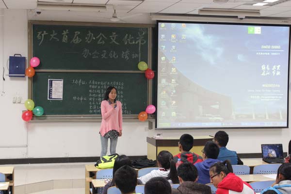 .办公软件培训会。10月29日晚7点,培训会在教三A402准时开始。艺术学院办公室主任杨子和社联办公室部长雷苗苗担任培训会主讲老师,安全学院团委学生会主席陶冰冰和学院大一新生参加了此次培训会。
