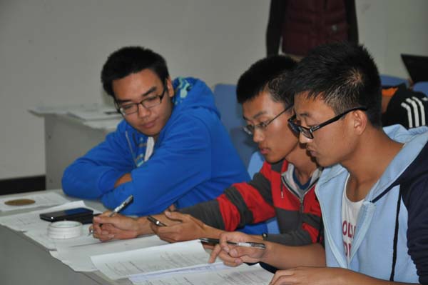 在主持人介绍此次竞赛的意义与目的后,7点10分,竞赛正式拉开帷幕。本次竞赛分为三个环节。第一环节为“礼仪不周找一找”,所有参赛队分为4个小组,依次观看视频并记录视频中的礼仪错误,由评委打分评定优胜者。比赛中选手们认真观看,仔细思考,绝大多数队伍都成功晋级下一环节。在第二个环节开始之前,主办方特意准备了一个互动游戏“你比我猜”来调节气氛。游戏中选手们不仅活跃起来,更放松了紧绷的大脑。在这之后,竞赛的高潮当属第二环节“办公知识考一考”。选手们争分夺秒,热烈讨论,每个人都努力为自己的小队增光添彩,其中安全学院的张晨等人表现突出,成功闯入了第三环节。而第三环节“办公效率比一比”的角逐更为精彩,每位选手在电脑屏幕和修改文稿之间来回穿梭,虽然没有激烈的讨论,却在文字中与对手进行