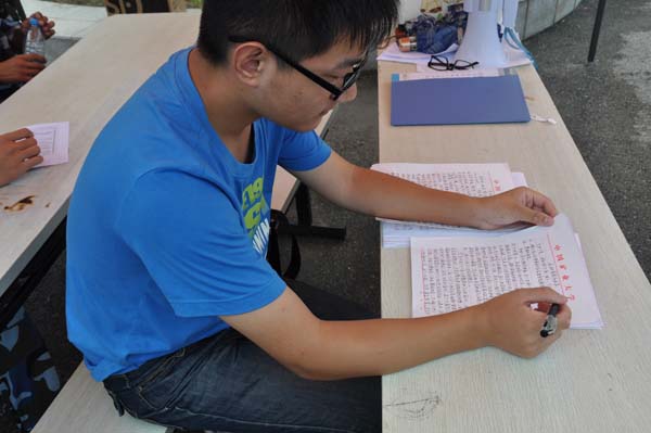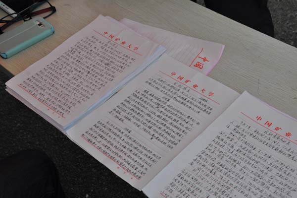 早晨在操场集合的时候,同学们都上交了军训感言,在工作人员审稿的过程中,发现同学们大多都写了满满的两页矿大稿纸,字迹工整,态度认真,其中有几篇写得尤为出彩。《我的青春在这里》写出了青春活泼的气息,将军训之苦化为了对人生的一种磨练;《他们》则用第三人称的角度写出了教官的辛苦和对教官的感激之情……这些文章并没有过多的采用华丽的辞藻,但是朴素而不失真诚的话语可以看出他们在第一天的军训生活中成长了很多,也收获了很多。军训才刚刚开始,用笔来记录军训的一点一滴,今后会成为最美丽的回忆。