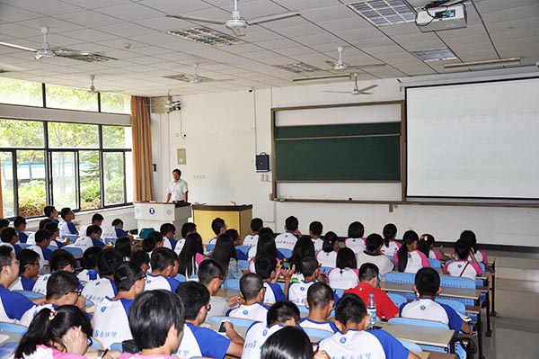 下午3点整,“校规校纪与安全教育”讲座正式开始。钱书记首先简单地向14级新生阐述了大学学习生活的基本要求,随后重点阐述了校规校纪的重要性,进入讲座的主题。钱书记从绅士会所