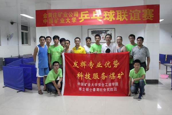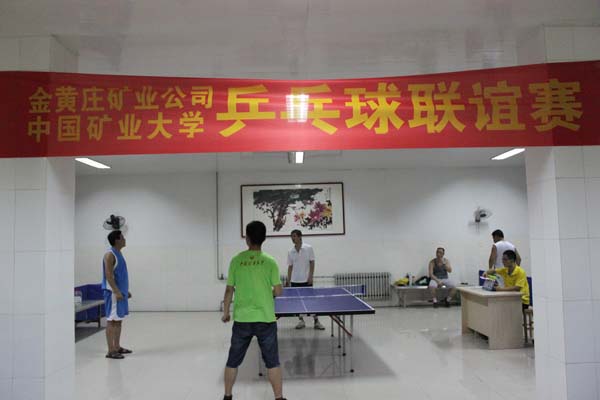 本硕博社会实践团与金黄庄矿业举办乒乓球友谊赛。本场比赛由总工程师曹国华组织,在矿文体活动室进行,双方各派乒乓球爱好者代表参加。