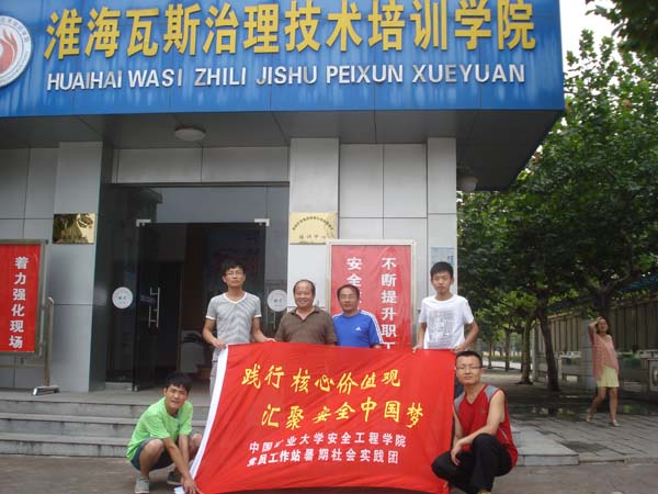 下午2点,队员们准时到达了淮海瓦斯治理学院,学院培训中心马主任热欢迎了实践团的到来,她说,我们学院主要培养瓦斯治理、探放水方面的管理及专业技术人才,你们矿大安全学院的学生未来都是瓦斯治理的专家,希望通过本次参观能够对你们以后的学习有所帮助。队员们来到大厅之内,映入眼帘的是一系列荣誉,包络全国职工教育培训示范点、国家级工程实践教学中心、江苏煤矿安全培训先进集体等,队员们看到这么多的荣誉后纷纷表示,一定好好把握这次参观学习的机会。在马主任的带领下,队员们参观了瓦斯抽采室、探放水设备室、通风原理室等几个培训基地,在于相关培训老师的交流中,队员们了解了一些在实际工作中更加方便的技术,马主任说,我们培训中心的老师都有着至少十年的工作经验,所以拥有十分丰富的现场经验,希望他们的经验能够对你们有所帮助。活动的最后,实践团的队员们又和马主任以及培训中心的老师就煤矿的发展前景和大学生到煤矿的就业情况进行了深入的探讨,至此本次参观活动顺利结束。