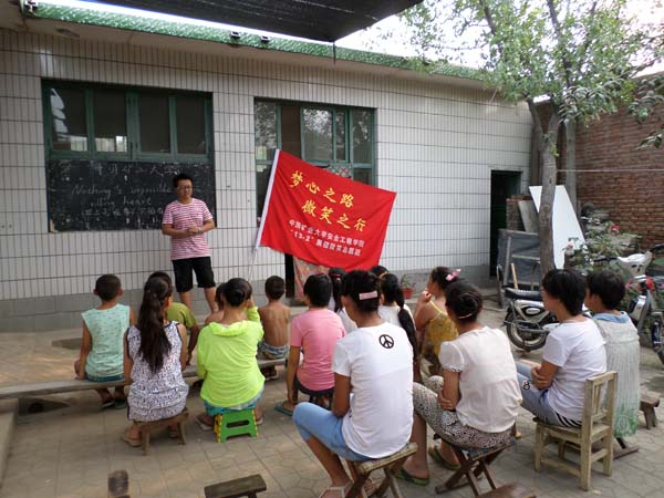 8月6日,天空淅淅沥沥的下起了雨,为了不耽误教课的进程,不辜负孩子们的期许,“梦心之路,微笑之行”河北分队的志愿者们在队长崔捷的带领下在雨中开展了爱心教学活动。