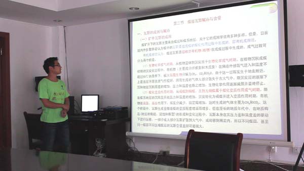 在读博士生郭汝林主讲。郭博士首先感谢矿区在社会实践过程中的大力支持,随后表达了希望自己能够为矿区职工带来新知识、新想法的良好愿望。郭博士针对金黄庄煤矿开采地质条件复杂,瓦斯压力大,瓦斯含量高的特点,介绍了瓦斯的概况、瓦斯含量综合评价指标,并结合自身学习和做科研项目的经历,与大家探讨了煤与瓦斯突出及防治技术。紧接着郭博士结合国内外的最新研究成果,阐述了井下瓦斯监测与管理内容。在接下来的时间里,郭博士着重讲述了煤矿瓦斯综合利用措施等当前热门内容,对金黄庄煤矿的瓦斯抽放系统给予高度评价。郭博士籍此机会,也向矿区推广绅士会所