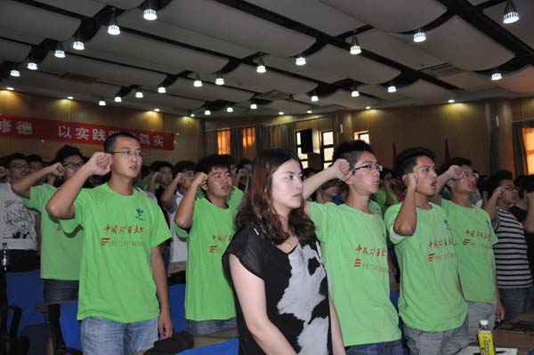 下午4点30,启动仪式正式开始。本次启动仪式共有十项议程,主要完成对大学生暑期社会实践的部署工作和为2014年暑期社会实践省级、校级重点团队颁发立项书以及全体同学的出征宣誓。 今年的暑期社会实践活动以“为祖国勤学修德,以实践明辨笃实”为口号,各学院重点实践团队积极参与。其中,安全学院获得研究生一支团队获得省级重点立项书,本科生“爱心阳光”之队获得省级重点立项书,“13-2”展翅微笑志愿团获得校级重点立项书,分别由学工处处长黄军利老师和党委宣传部副部长龚成老师为他们颁发。最后,全体同学在校青协主席王茂林同学带领下进行了出征宣誓,校党委副书记曹德欣老师对即将参加暑期社会实践的同学们提出了殷切的希望,并给予了美好的祝愿。同学们应不辜负学校的期望,以火热的激情投入到暑期社会实践各项活动中去,为祖国勤学修德,以实践明辨笃实。