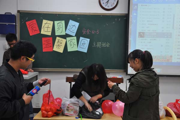 冬日的临近,天气也在渐渐转冷,但是10月28日晚,却有一缕阳光温暖了整个教学楼,那就是安全12级3班同学们举办的“爱在身边,温馨家园”主题班会活动。正是这一缕阳光,温暖了三班的每位成员,加深班级同学之间的感情和凝聚力,在这寒冷的冬日给班级带来同学间温暖的回忆,在带给大家多姿多彩的活动的同时,更为大家的内心带来一束光亮!
