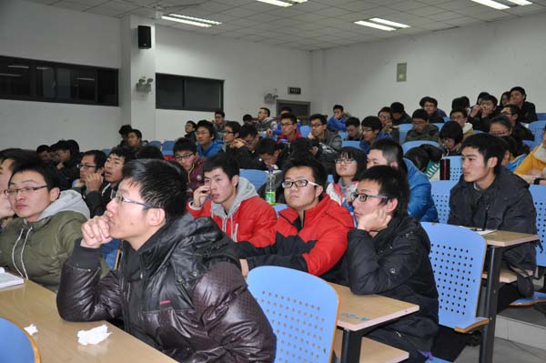 目标是制定生涯规划的关键。随后上台的刘建安硕士就大学生涯规划中的目标制定为大家做了详细的讲解。他从大学毕业后就业和继续深造的两个选择方向展开论述,他强调如果选择就业就要多参加活动,提高自己待人接物的能力;若深造则需要将绝大部分精力放在专业基础知识的研究上。此外,他为大家介绍了专利申请的具体流程,注意事项,准备工作等方面的内容,还为大家推荐了《高效能人士的七个习惯》这本书,供大家学习。程家骥硕士则是针对论文撰写为同学们做了生动的演讲。他从论文撰写的准备工作,主要内容,撰写过程,审核投稿等方面做了详细的讲解。他鼓励同学们提早尝试撰写论文,为以后在核心期刊上发表文章积累经验。三位嘉宾演讲完以后,交流会进入了互动提问环节。三位嘉宾就同学们提出的从零撰写论文、如何申请国家级创新项目、数学建模、挑战杯、就业选择等方面问题做了详细的解答。最后交流会在雷动的掌声中圆满结束。