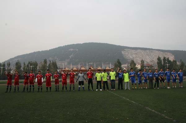 中午12点50分,随着裁判一声令下,安全学院与电力学院的小组对抗赛正式开始。比赛开始后,电力学院率先发难,七号球员凭借一记漂亮的射门攻破了安全学院的大门。然而开场失利的安全学院的球员们并没有气馁,在后面的比赛中展现出了自己勇往直前的精神面貌和昂扬向上的斗志,场边的观众们也不断为他们呐喊欢呼、加油助威。上半场的比赛进行到一半时, 51号球员齐世铭带球进入禁区,迅速踢出一记大力抽射,令人遗憾的是球击在了门柱上。上半场临近尾声时,电力学院获得一粒点球并罚进,随着裁判的中场哨声响起,半场比赛也正式结束。中场休息过后,战况更加激烈的下半场比赛开始。比赛进行到46分钟时,安全健儿再次取得机会。20号球员穆拉提艾利突破对方防线,接到队员传球,抬脚,抽射,但球最终越过门框而出。电力学院则转为保守战术,双方都没有改写比分。最终,安全学院以0:2的比分输给了电力学院。