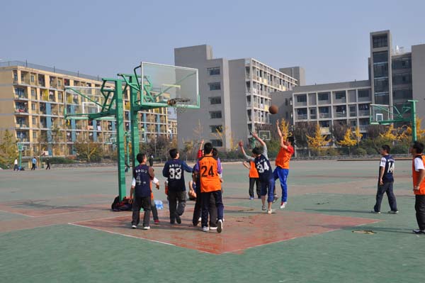 中午12点30分,比赛的号角正式吹响。最西边的场地上是消防13-1班和安全12-3班的比拼。消防13-1班的队员们率先进入状态,其中20号伊卜同学依靠快速移动和精准的投篮频频在内线得手,第三节结束后,便已打出20:12的小高潮。而安全12-3班的队员们也不气馁,他们渐渐加强对内线的防守,并且减少了自身的失误,逐渐将比分扳成只差2分,最终,消防13-1班顶住压力,以24:23的微弱优势胜出。安全13-3班和安全10-2班的比赛也是精彩纷呈。安全10-2班的五名队员配合默契,出手稳健,他们漂亮的假动作和快攻技术引得在场的观众掌声连连,啧啧称赞,很快他们便掌控了局面,以43:30的比分拿下比赛。与此同时,安全13-2班和安全11-2班的比赛也在激烈的进行。安全11-2班的队员一开始便打的积极主动,不断的调整战略方策,导致安全13-2班的3号队员频频犯规,不过,他们并不放弃,只见四号队员在底角控球,手一振,电光火石之间,手中球像着了魔似的,匍匐在中路的队员鱼跃接住并上篮得分,无奈前面落下太多,安全13-2班最终以27:41告负。最后一场比赛在安全12-4班和安全10-1班间进行,双方一上场便展现出火热的手感,比分一直胶着进行,半场过后,12-4班的25号阿曼波力突然加快比赛节奏,利用身高优势频频撕裂对方的防线,此时10-1班已是回天无力,不得以26:37输掉比赛。