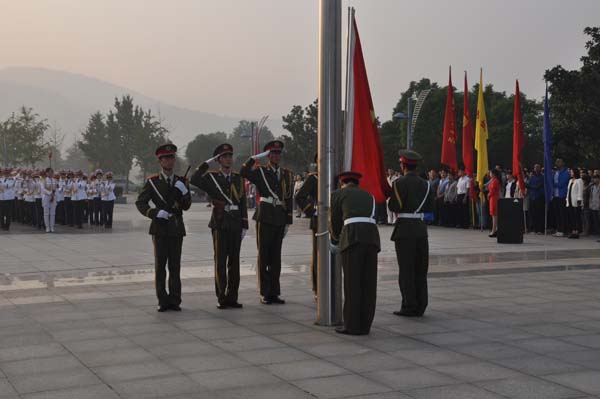 “恰同学风华正茂,梦想锦绣中国万年”十一升旗暨2013级新生成人宣誓仪式在同学们饱含深情演唱的校歌中圆满结束。