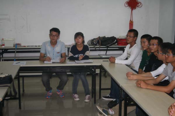 、记者站站长袁野以及参加面试的13级同学。此次招新会由队长杜长州主持,达到了预期的效果。