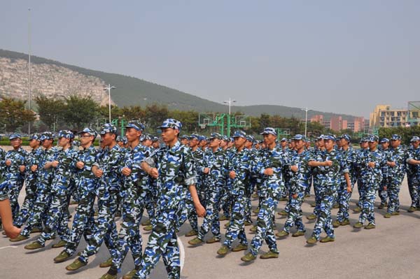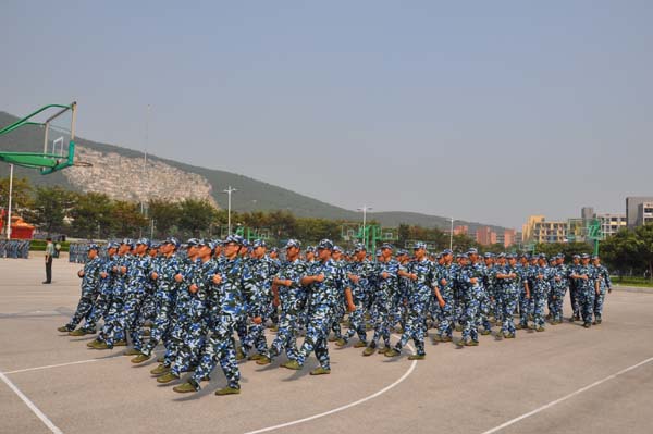 嘹亮的口号,整齐的步伐。在负责人的带领下进行训练。他们对自己在训练中暴露出的问题进行了总结,并商量解决的方法。同时,他们针对自己做的不好的科目进行了强化训练,解决了队列中出现的问题,巩固了训练成果。上午的训练已让他们精疲力竭,但他们的热情丝毫不减。在夕阳的田径场上,他们的口号声格外嘹亮,气势更盛。