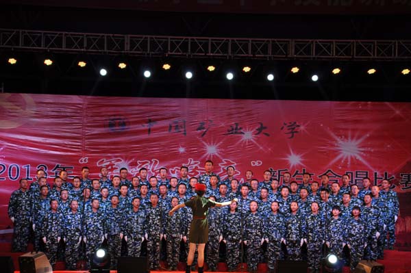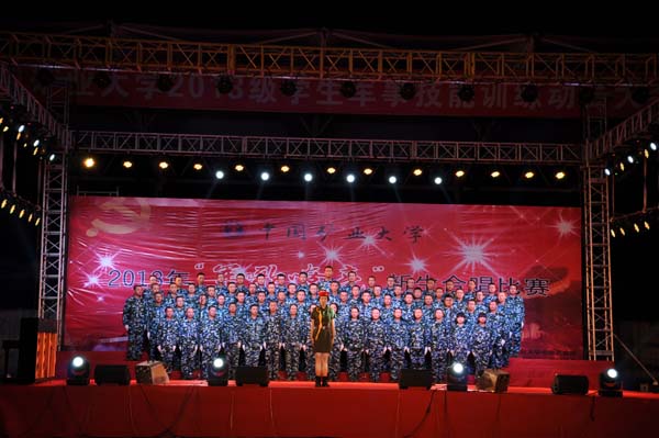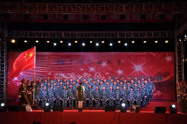 校党委武装部、校团委联合举办的2013年“军歌嘹亮”新生合唱比赛在南湖校区第二运动场隆重举行。学校相关部门和各学院负责人,全体新生辅导员和2013级新生们参加了活动。2013级辅导员孙婷、杨洋老师带领新生合唱团参加了比赛,大家以饱满的精神状态和出色的歌唱表演,最终赢得了大家的掌声。
