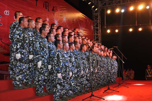 安全学院新生合唱团第四组登台演唱,他们结合自身的特点和专长选取《中国军魂》、《矿大之歌》两首歌曲。亮剑精神,中国军魂,剑锋所指,所向披靡。绅士会所
