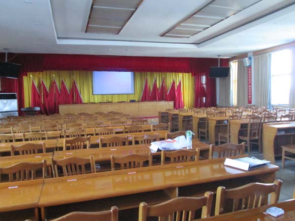 在参观完会议室之后我们来到的是员工的培训大厅,在这个足以装下150人的大厅里,有传统的米黄色的桌椅、大红色的背景幕布以及投影仪等设备,显得庄严、厚重。“这里平时就举行一些员工培训,当然矿上的一些重要会议,比如说党代会、支部表彰大会等也都是在这里举行。”在此之后,马主任还带着实践团继续参观了矿上办公楼的各个科室。参观的最后,马主任说:“这两年张集的变化很大,变得更适合我们矿工生活。”