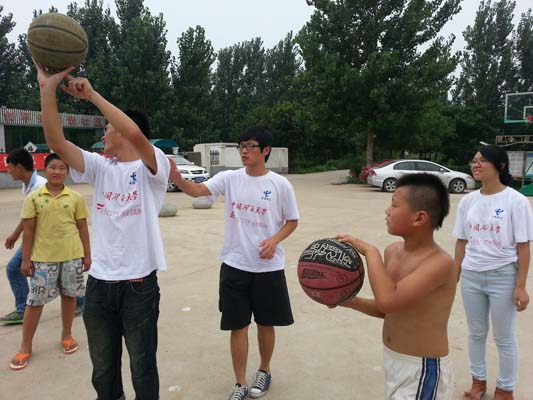 7月23日当天,“耕耘希望,点亮明天”实践团于早上8点抵达桥上村。随后,他们将村里的孩子们召集到当地篮球场。正确的投篮手势才能赢得漂亮的进球。队员们通过演示,将多种投篮手势授予孩子们,并让他们当场练习投篮。在队员的细心指导下,孩子们初步掌握了投篮的技巧,并能较为不错地投进几个球。尽管还不熟练,但只要刻苦练习,终能有所收获。