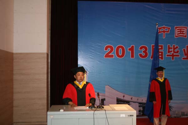 仪式上,李增华副院长表示,大四的同学们今天就要正式毕业了,他们即将踏上新的征程,学校学院都希望他们今后能够更加努力,为母校争光。而后,章毛平书记满怀欣喜地与毕业生握手表示祝贺,并亲切细心地为每一位毕业生拨流苏,并在院旗下与其合影留念。随后,葛世荣校长亲自为毕业生们颁发学位证书。葛校长高兴地与每一位毕业生握手道贺,并亲切地与他们在校旗下合影留念。