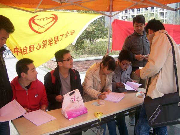 早上9时30分,五个学院的心理自助中心按时到达三食堂广场,并着手准备活动场地、比赛用具等赛前工作。同时,各学院心理自助中心对工作人员进行了组织安排,并对于大赛的记录,评分等工作合理地进行了分配。