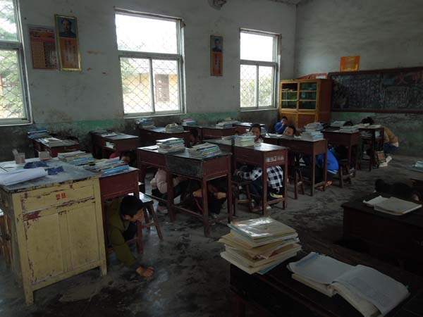 本次防震演练共分为两个环节。首先,青协人员分成三批分别对桥上中学的三个班级讲解应急避震的主要方法以及紧急疏散后的集中地点和疏散路线。紧接着,进行的是地震模拟演练。在拉响第一次响铃的时候,首先进行的是地震时在室内正确保护自己的演练。过程中,同学们立即就近躲避,采用卧倒或蹲下的方式,躲到桌角或在墙角。约两分钟后,随着第二遍铃声的响起,开始进行的是逃生演练。老师们在一旁维护秩序,同学们依次有序地跑出教室。在空旷地带清点完人数后,青协成员们将同学们带回教室并对同学们逃生演练中出现的问题进行针对性的点评。