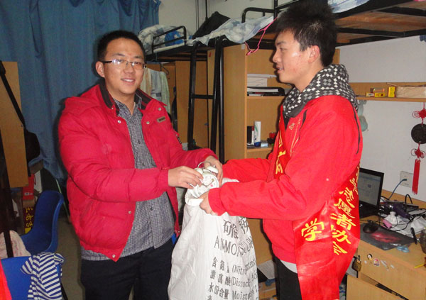 晚上十点,在队长王鹏飞的带领下,志愿者们走进梅三宿舍进行募捐。募捐的过程中,绅士会所