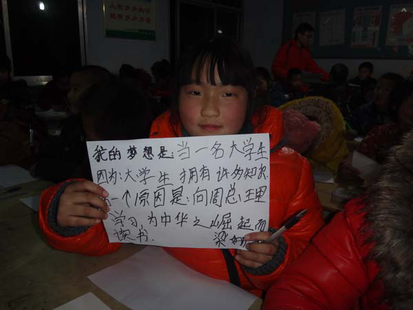 相信通过这次书写梦想的活动,这些留守儿童们一定能为梦想插上翅膀,在今后的学习生活中有更好的表现。