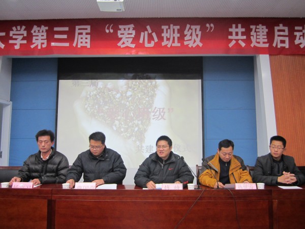 首先,安全学院党委书记钱雄书记为启动仪式致开幕词,表达出钱书记对“爱心班级”活动的肯定与鼓励。紧接着,安全学院学生服务分队队长任青刚细致的将“爱心班级”共建流程介绍给大家,为大家以后能够更好的融入并参与“爱心班级”的共建活动奠定了良好基础。随后,学生服务总队考核部部长王慧宣读“爱心班级”考核制度。宣读完成后,来自安全11-3班的第二届优秀爱心班级负责人肖义萌发言,发言特别强调了一个真正强大的班级不仅需要优秀的成绩,也需要满满的爱心去填充。紧跟其后,来自材料、计算机、化工等学院的第三届共建班级负责人积极踊跃的发言,他们用自己的切身体会说出他们心中“爱”的涵义。此后,学生服务总队指导老师曹国强总结了两年以来“爱心班级”的成果,并表达出他对“爱心班级”共建活动的殷切期盼。最后,启动仪式在一首《爱的奉献》的歌声中落下帷幕。