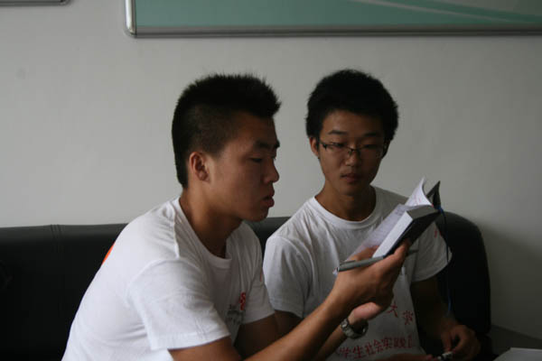 一番简短的自我介绍后,实践团团长于群向李枫主任道明了实践团的来意。在党的十八大即将召开之际,实践团欲通过调研了解北望村党支部建设情况、居民的生活工作情况以及大学生村官的日常工作。面对大学生们事先准备的若干问题,李主任友好地接受了实践团的采访。从北望村的土地面积、人口组成,到村民日常生活工作与娱乐情况,再到村中矛盾纠纷、民事调解,李主任对实践团作了详细的介绍。