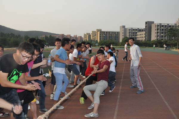 下午五点整,大一和大二的各班级集中到第三运动场,体育部组织大家抽签后,各班参赛队员各个摩拳擦掌,进行紧锣密鼓的准备。炎炎夏日也阻挡不了同学们的热情,随着比赛开始的口令响起,比赛立即就进入了白热化,现场可谓激情四射,比赛各班的同学都铆足干劲,拼尽全力将绳子向自己这边拉,当出现比赛胶着的状况时,拼的更是参赛同学的心态,只有咬牙不放弃才有赢的可能。旁边观战的同学虽然不能上场,但也都情绪激昂,呐喊声整耳欲聋,交织在整个第三运动场,最终比赛在激烈而又温馨的气氛中结束,恭喜12-2班取得了冠军。