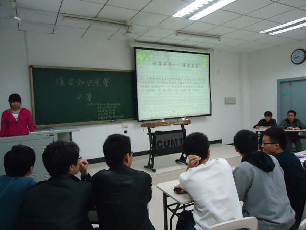 安全、矿业、信电、机电与孙越崎五个学院的团委学生会共同举办的“煤炭知识竞赛”决赛取得圆满成功,此次活动由五个学院的学习部与科技学术部一同承办。