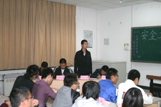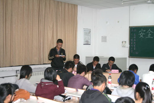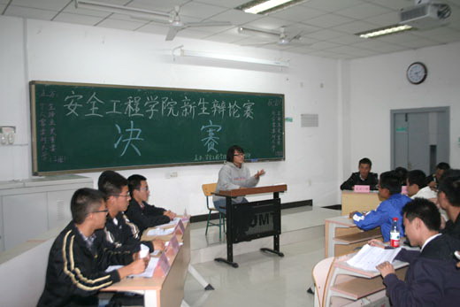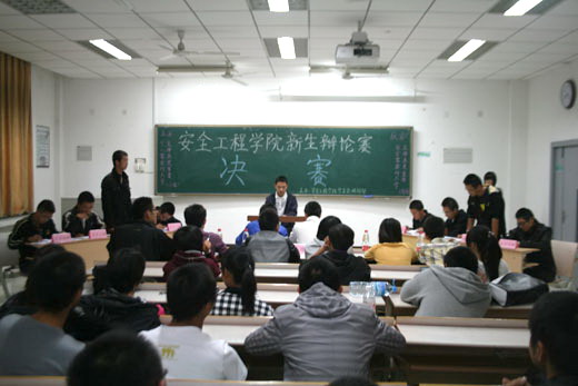 新生辩论赛决赛在教五A106拉开了帷幕,安全11-3班和消防11-1班就个人需求和社会需求对大学生择业哪个更重要进行了激烈的辩论。2011级辅导员刘永杰老师,历届最佳辩手李晋津、董威、路世远等09、10级优秀辩手担任本场比赛的评委。本场比赛由王蒙主持。