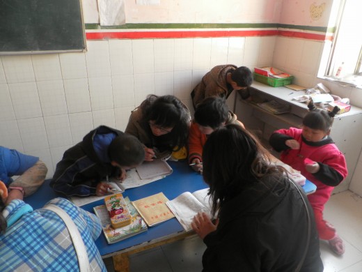 之后,同学们充当了小老师的角色,教孩子们读课文、识生字,并和他们做互动小游戏。孩子们的热情非常高涨,态度非常积极。整个活动一直持续到下午5点钟。最后,同学们依依不舍和启聪的孩子们告别。